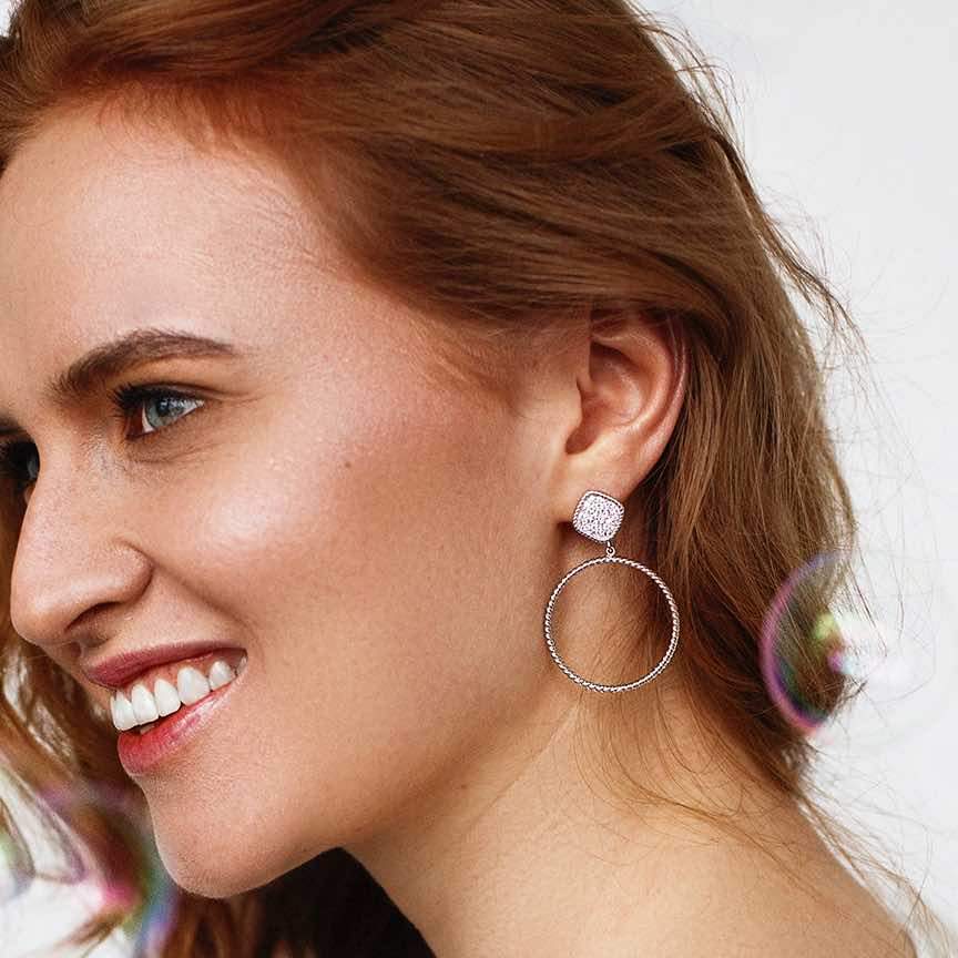 Sterling Silver Dangle Hoop Earrings