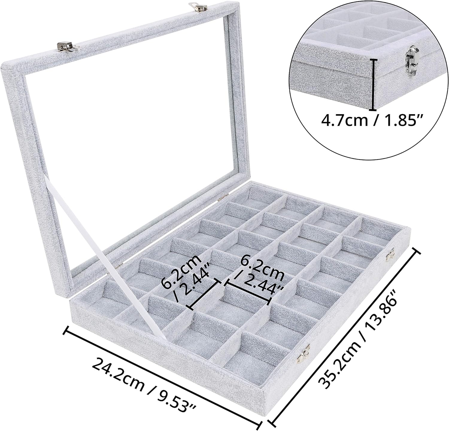 Dėl stiklinio dangčio papuošalai yra apsaugoti nuo dulkių, drėgmės, oro ir nešvarumų. Visi aksesuarai matomi iš karto, todėl nereikia ieškoti ar rausti dėžutės viduje. Dėžutę galima laikyti ant kosmetinio staliuko, komodos ar stalčiuje. Keli organizatoriai gali būti sukraunami vienas ant kito, netrikdant apatinių skyrių.