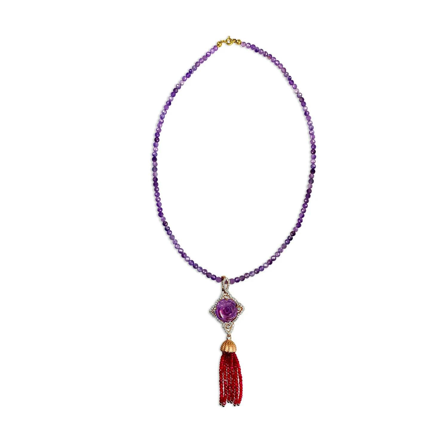 Amethyst & Garnet Tassel Necklace – A Belle Époque-Inspired Masterpiece