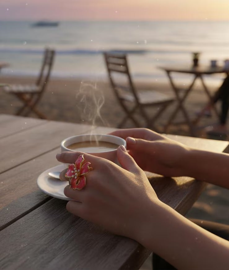 - Enamel orchid design – A striking floral motif adding a lively burst of color.
